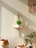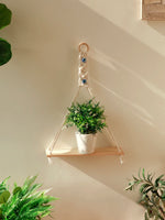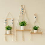 Sublimez votre intérieur avec cette étagère suspendue en macramé 100 % coton, tressée à la main avec perles œil protecteur. Parfaite pour une plante ou une bougie, elle apporte une touche bohème chic, naturelle et chaleureuse à votre décoration murale. Idéale pour le salon, la chambre ou l'entrée.
