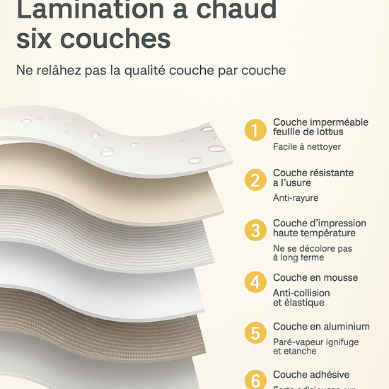 • Facile d'entretien, imperméable et résistant à la moisissure et la chaleur