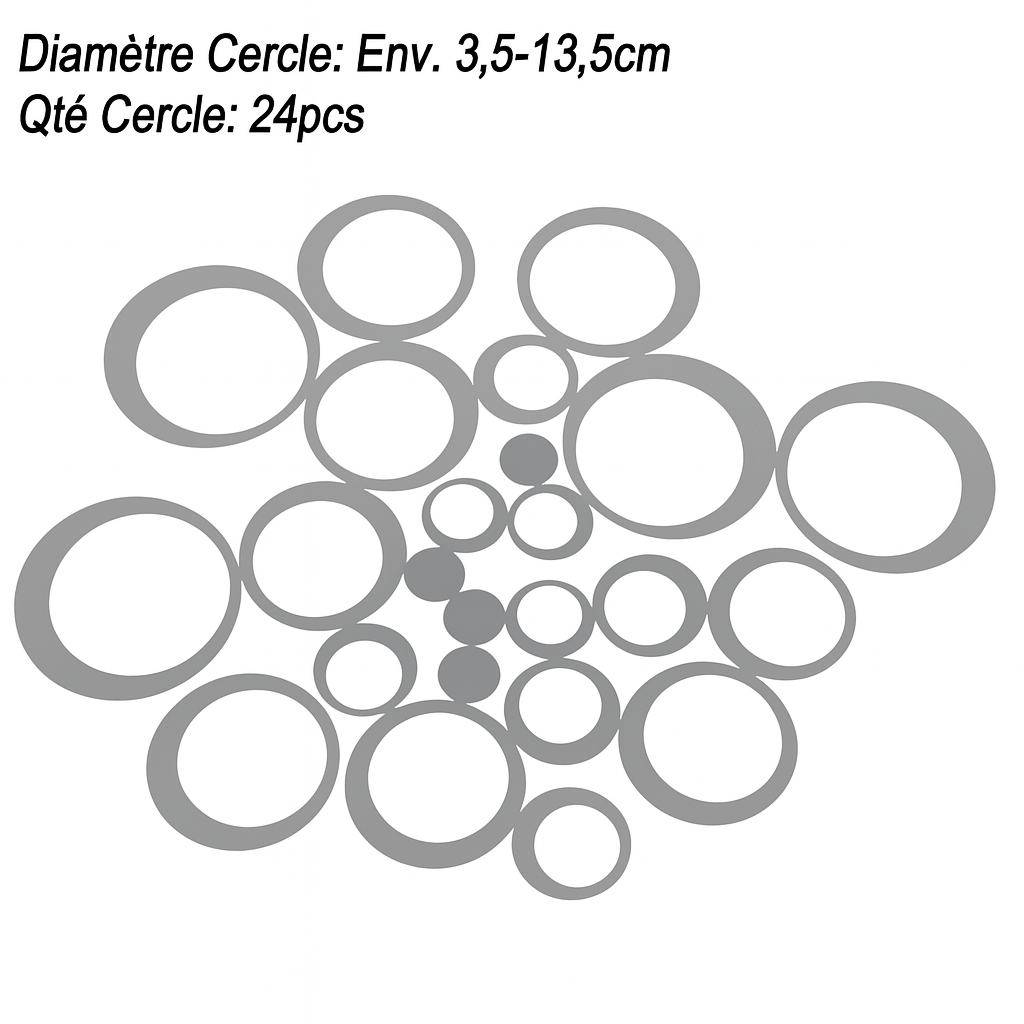 Ensemble de 24 cercles effet miroir, pour une composition murale artistique et dynamique.
