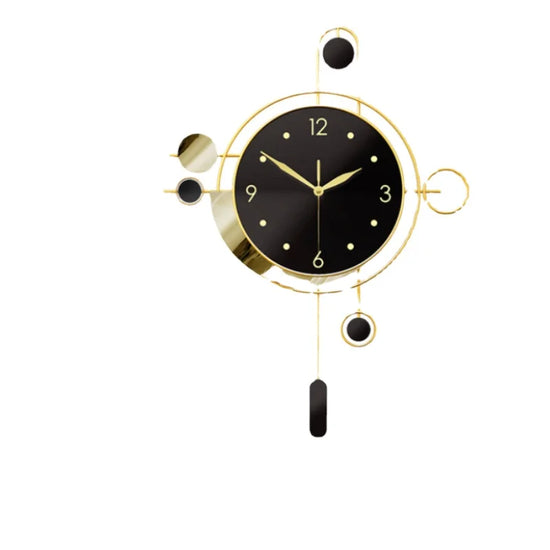 Ajoutez une touche artistique et contemporaine à votre intérieur avec cette horloge murale au design géométrique audacieux. Son cadran noir contraste élégamment avec une structure dorée et des éléments circulaires qui évoquent un style à la fois rétro et futuriste. Les détails en métal brillant et les formes asymétriques lui confèrent une allure sculpturale, idéale pour sublimer un salon, un bureau, une cuisine ou une entrée. Plus qu’un simple objet fonctionnel, c’est une véritable pièce décorative qui capte le regard.