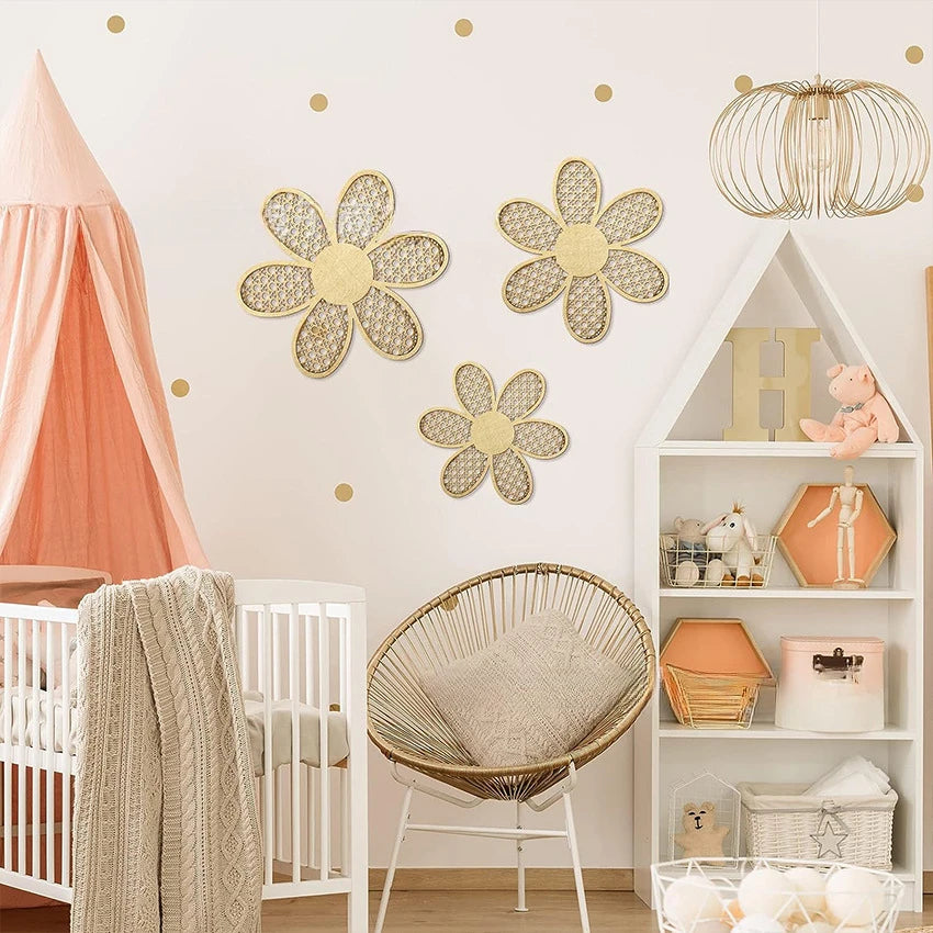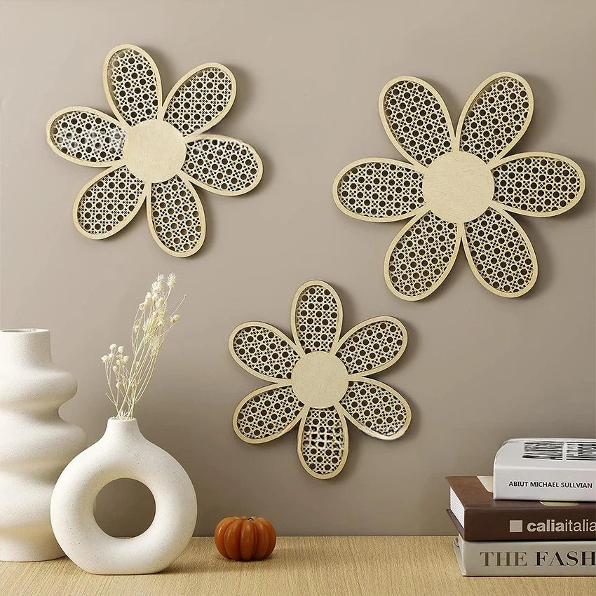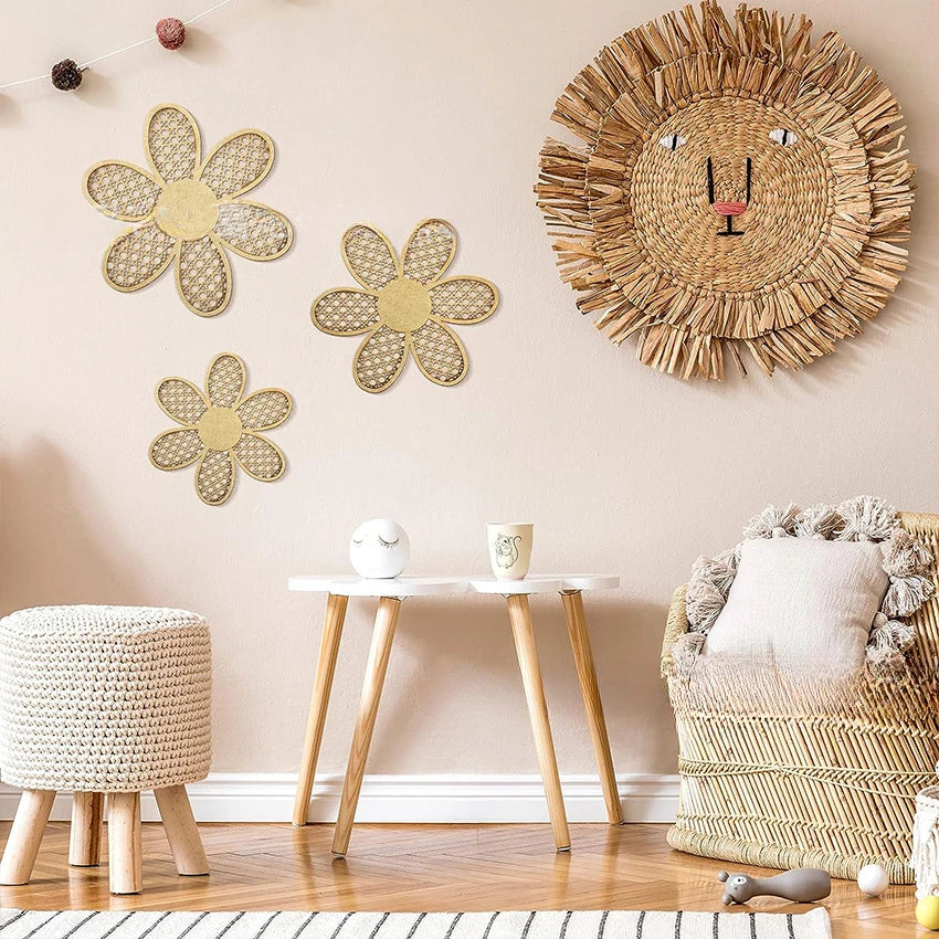 Offrez une touche de poésie à votre intérieur avec cette décoration murale en forme de fleur. Le contraste subtil entre les pétales ajourés en cannage et le cœur lisse crée un rendu doux et moderne, parfait pour les amateurs de déco naturelle et slow living.