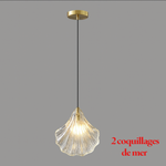 Les lampes suspendues ou les plafonniers sont composés de 2 coquillages en verre