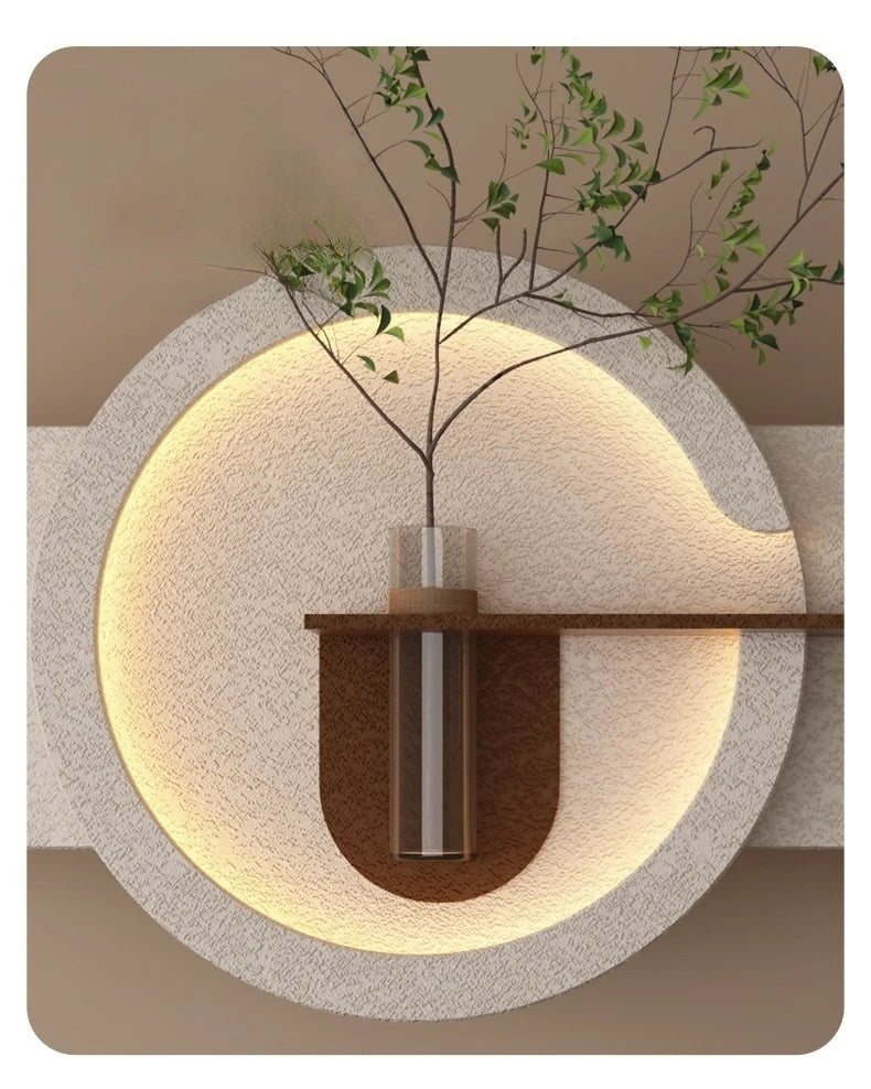 Sublimez votre intérieur avec cette décoration murale cuisine moderne, au design épuré et contemporain. Composée d’un panneau texturé ovale et d’un cercle lumineux, elle crée un point focal doux et sophistiqué. Son étagère discrète permet de mettre en valeur des objets décoratifs ou plantes fines, parfait pour instaurer une ambiance zen et chaleureuse.