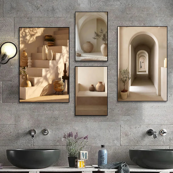 Offrez une touche de charme naturel et d’élégance artisanale à votre cuisine avec cette décoration murale aux tons doux et épurés. Inspirée du style méditerranéen moderne, cette série d’affiches met en valeur la beauté des matières brutes, des formes architecturales simples et de la lumière naturelle.