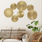 Élégance décorative : Le design raffiné et la texture travaillée de cette décoration murale dorée apportent une touche élégante et captivante à votre intérieur.