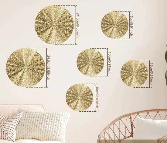 Vous serez ravi de votre choix de décoration murale dorée. Peut être installée légèrement surtaposée ou plus écartée selon votre espace. S'adapte bien à toutes les pièces de la maison et facile à installer