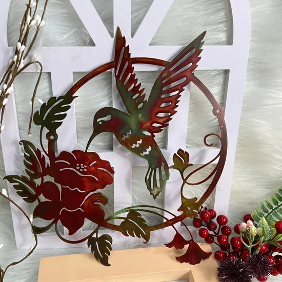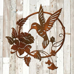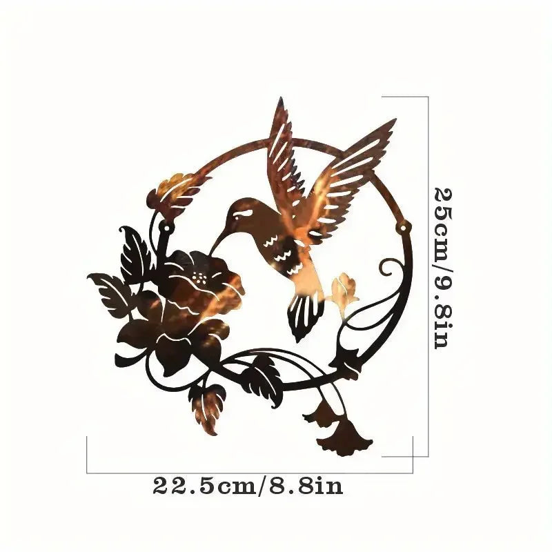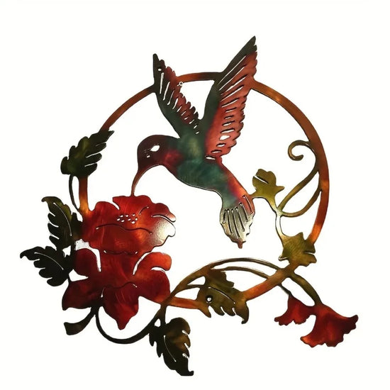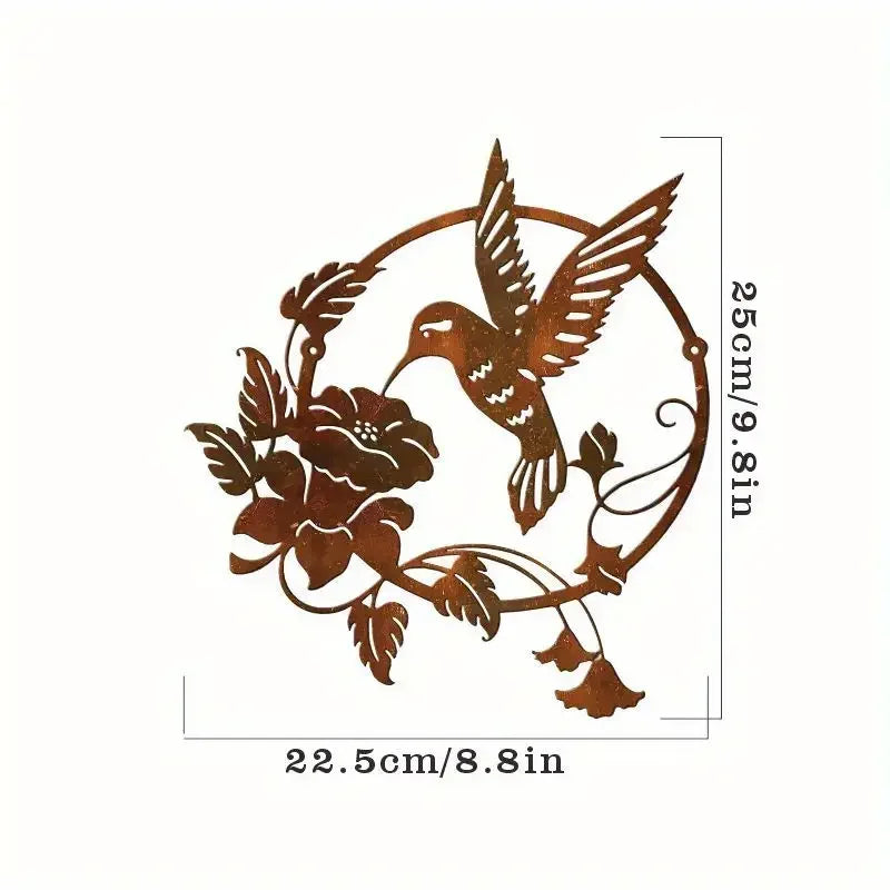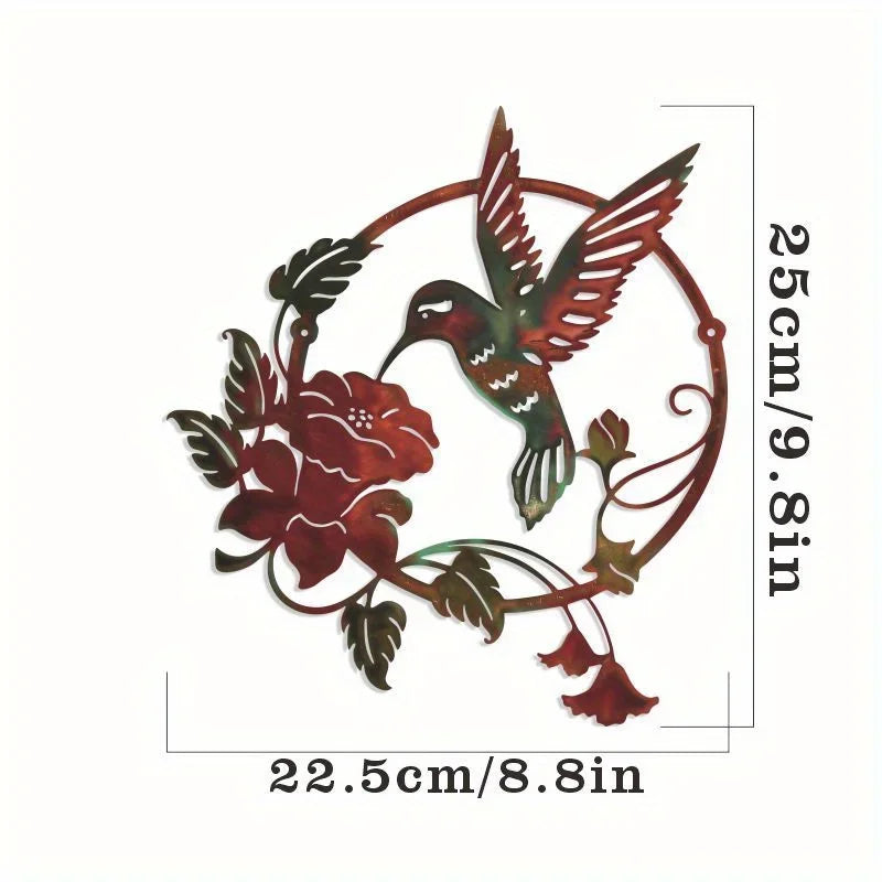 Offrez à vos murs extérieurs une touche de poésie avec cette magnifique décoration murale en fer représentant un colibri en plein vol, s'approchant d'une fleur épanouie. Conçue dans un métal travaillé de différentes teintes ou patine noire, cette œuvre d’art apporte charme et authenticité à votre terrasse, jardin ou balcon.