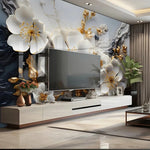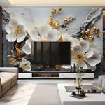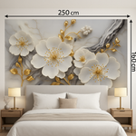 Créez un effet spectaculaire dans votre salon ou chambre grâce à cette fresque florale murale en 3D, imprimée sur revêtement haut de gamme. Son relief impressionnant, ses fleurs aux reflets dorés et sa texture élégante transforment votre mur en œuvre d'art immersive.