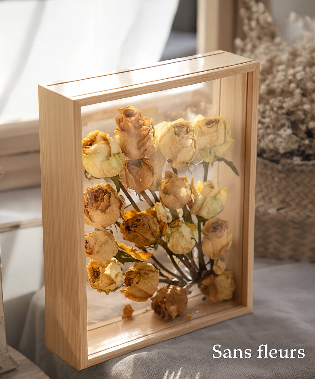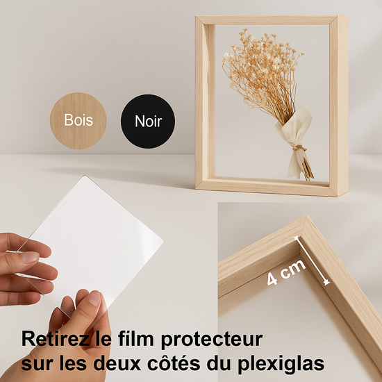 Note importante : Cadre et plexiglas vendu sans fleurs séchées