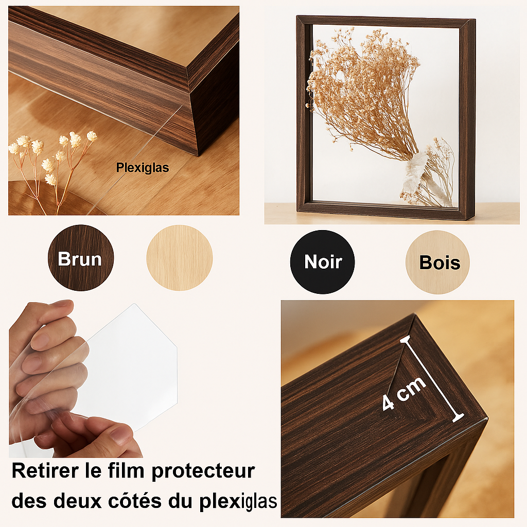 Parfait pour encadrer : fleurs séchées, photos, papillons, collages, peintures légères, etc.