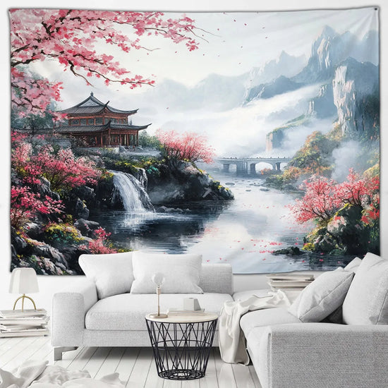 • Illustration de style paysage chinois/japonais imprimée en haute définition