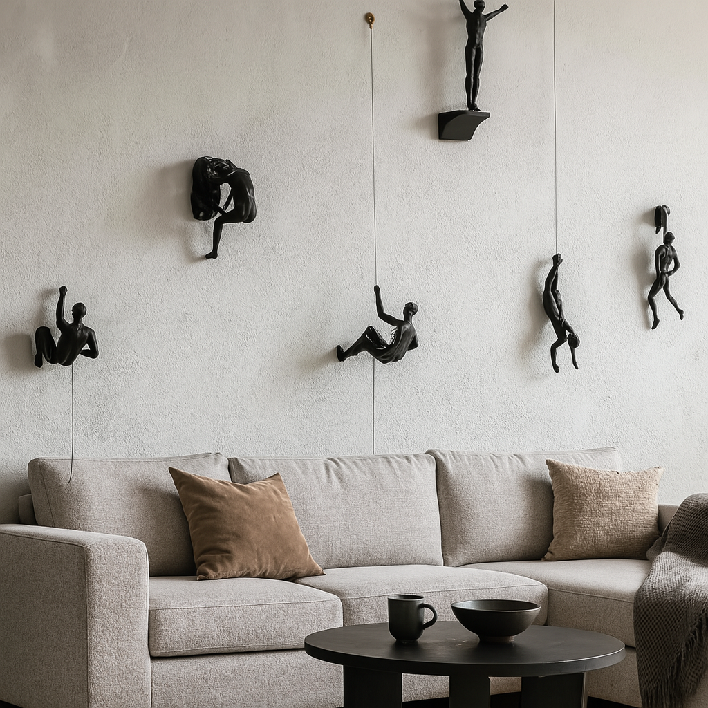 Donnez vie à vos murs avec cette décoration murale hors du commun représentant des grimpeurs suspendus dans un mouvement figé et saisissant. Alliant design moderne et symbolique forte, cette composition sculpturale incarne la volonté de se dépasser et d’atteindre des sommets.