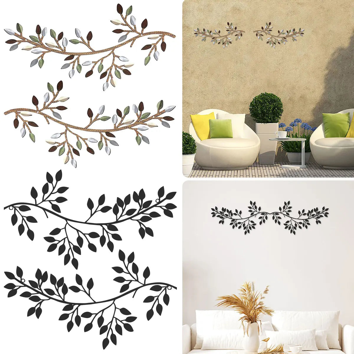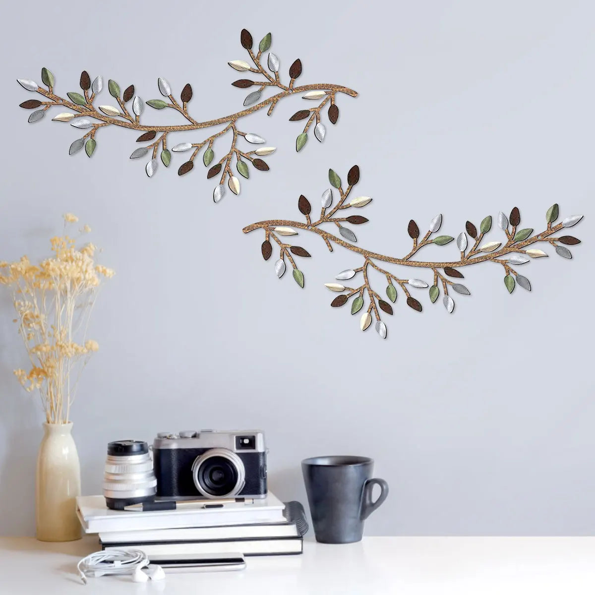 2 × Décoration murale métal feuille (branche d’olivier)