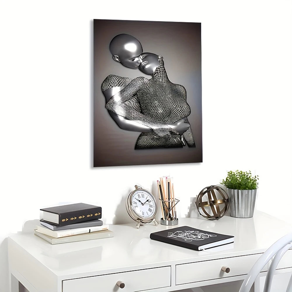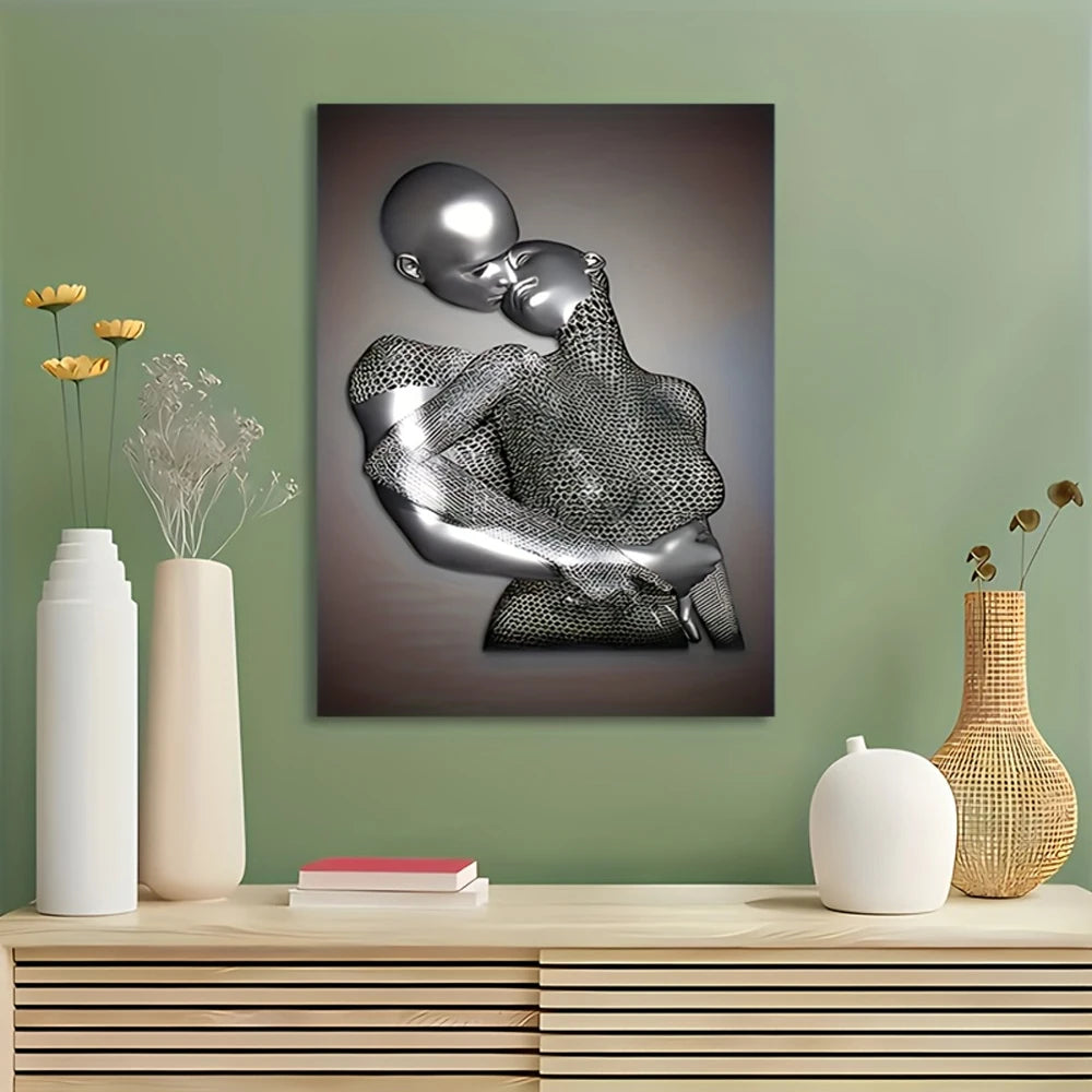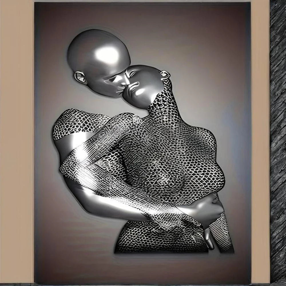 Laissez-vous séduire par cette pièce d’art moderne saisissante représentant un couple stylisé en pleine étreinte, fusion de tendresse et de sensualité. Le jeu de textures métalliques en relief et les motifs géométriques raffinés évoquent à la fois force et délicatesse. Imprimée sur toile (canvas), cette sculpture murale offre une présence artistique forte, idéale pour sublimer un salon, une chambre ou un espace contemporain. Une œuvre artistique qui capture l’émotion dans la matière et invite à la contemplation.