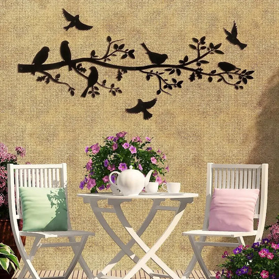 Offrez à vos murs une touche poétique avec ce décor mural en métal représentant une branche habitée d'oiseaux en plein vol. Une création artistique aux lignes fines et élégantes, parfaite pour instaurer une atmosphère douce et apaisante dans votre intérieur.