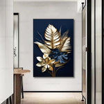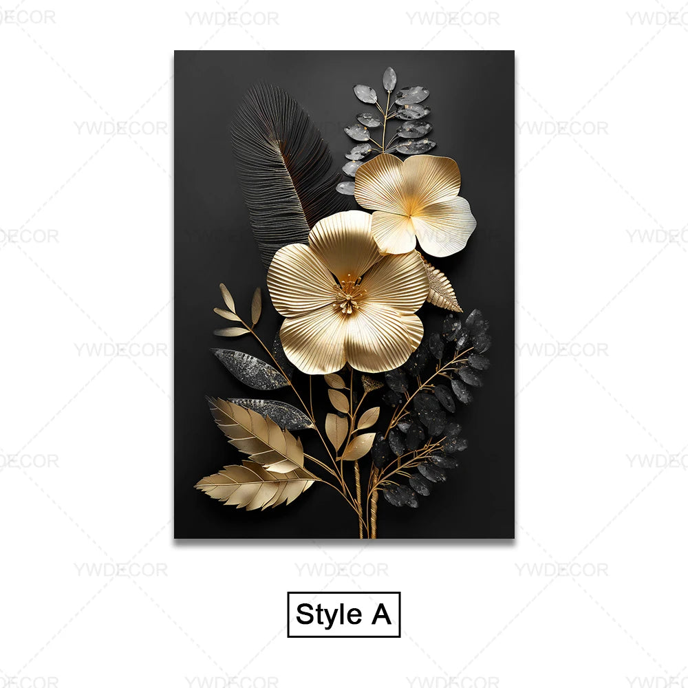 Apportez une touche de luxe à votre intérieur avec ces toiles effet relief alliant élégance florale et raffinement doré. Chaque composition marie feuilles et fleurs stylisées en or et noir sur un fond sombre, créant un contraste saisissant. Idéal pour sublimer un salon, une chambre ou un bureau contemporain.