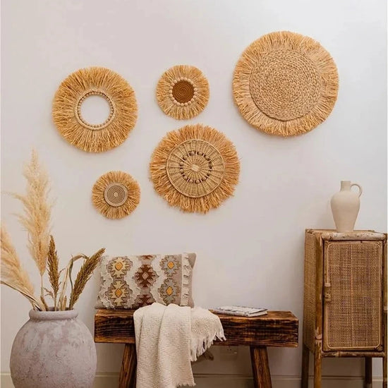 • Fibre végétale & paille : matières 100 % naturelles, issues de plantes séchées, apportant chaleur et texture à votre décoration murale.