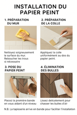 - Produit non auto-adhésif (hors PVC et toile adhésive) : nécessite une colle pour papier peint classique