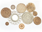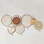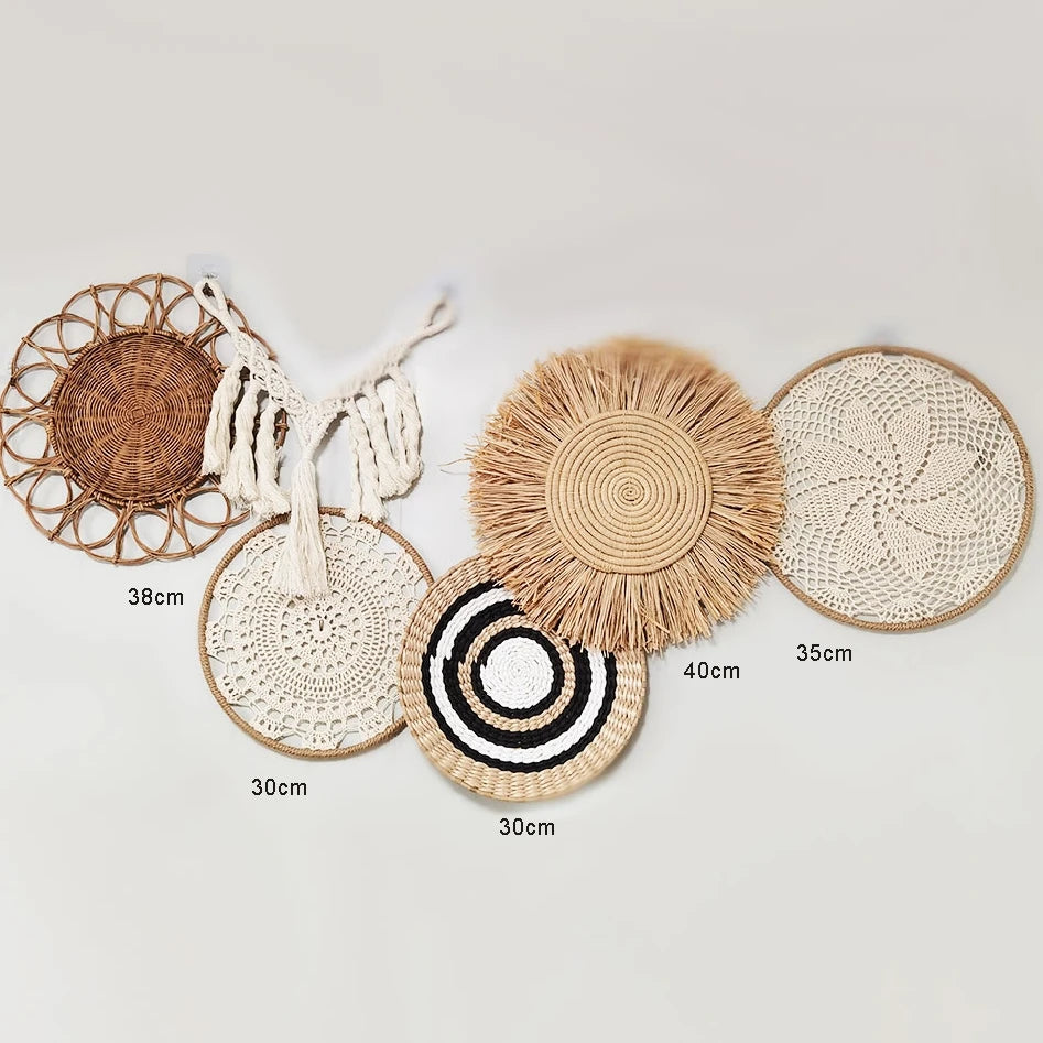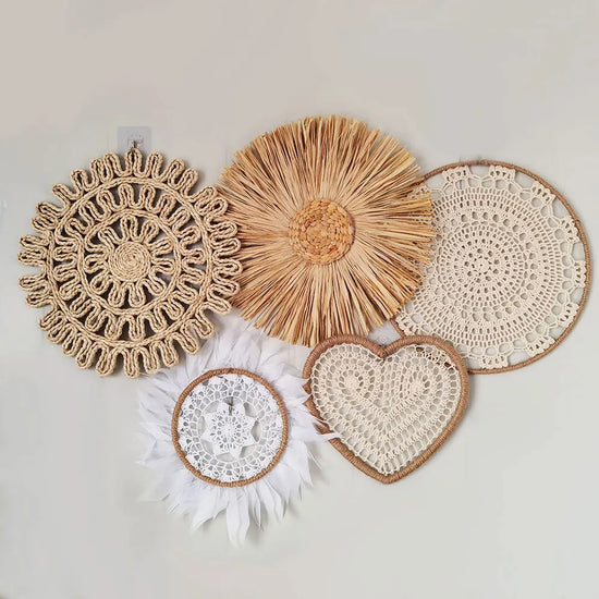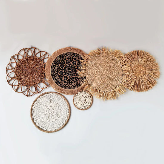 Apportez chaleur et caractère à vos murs avec cet ensemble de décorations murales en rotin et fibres naturelles. Composée de pièces aux motifs uniques — tressages aérés, mandalas, crochet et finitions en jute ou raphia — cette composition incarne l’élégance artisanale dans un style bohème chic. Idéale pour créer un point focal dans un salon, une chambre ou une entrée, elle mêle authenticité et douceur. Une harmonie parfaite entre matières naturelles et savoir-faire traditionnel.