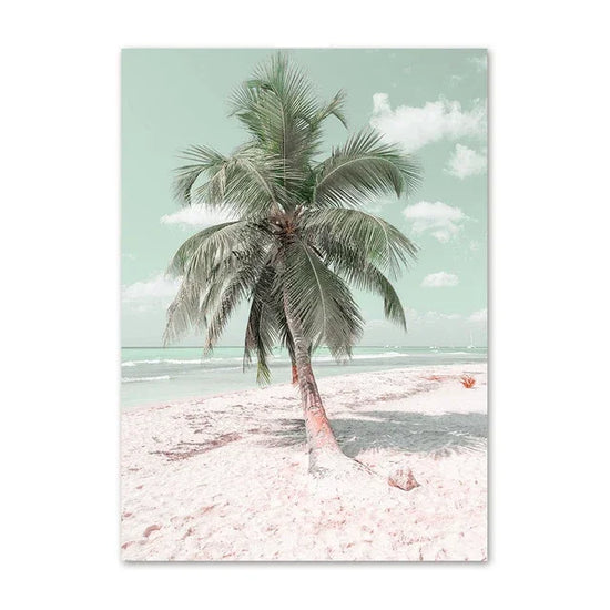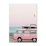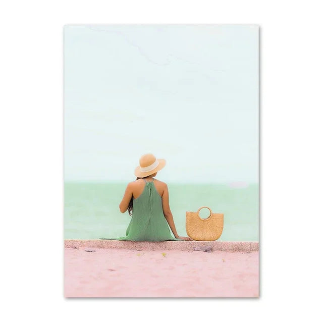 Esprit scandinave moderne et doux, avec des visuels pastel et apaisants : plage, mer, van rétro, pampa, silhouette féminine, palmier, etc.
