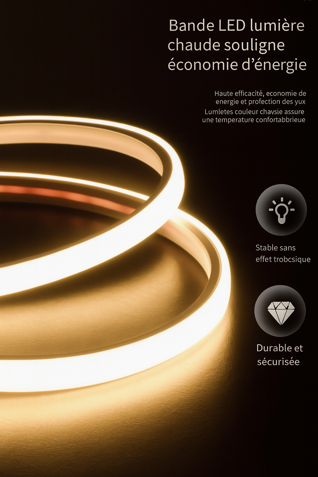 Lumière LED blanche : éclairage intégré à intensité homogène, apportant une touche de sophistication à la pièce.