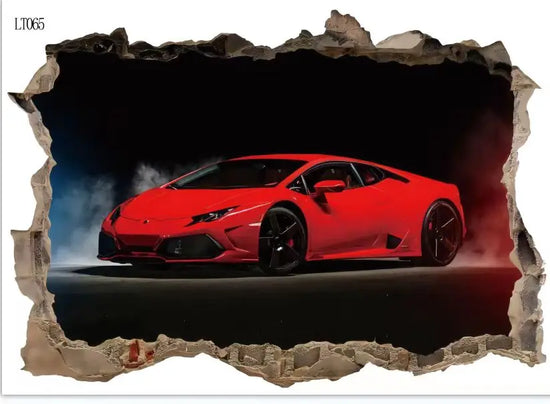 Offrez à votre intérieur une touche de puissance et de vitesse avec cette décoration murale saisissante. Une voiture sportive semble surgir à travers un mur en flammes, pour une ambiance spectaculaire garantie.