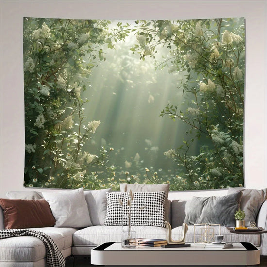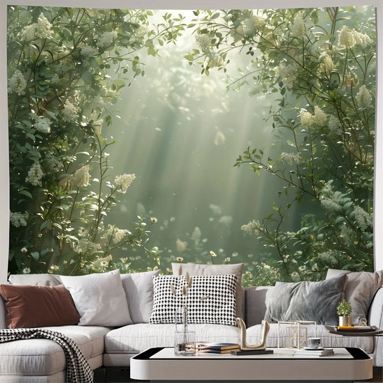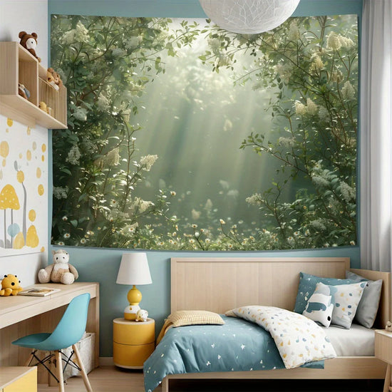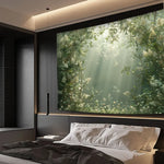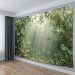 Plongez votre intérieur dans une atmosphère paisible avec cette décoration végétale murale à l'effet immersif saisissant. La lumière douce filtrant à travers un feuillage luxuriant crée une véritable fenêtre ouverte sur la nature, apportant fraîcheur et sérénité à votre espace de vie. Idéale pour un salon, une chambre ou un coin lecture, cette tenture transforme instantanément votre mur en un tableau vivant.