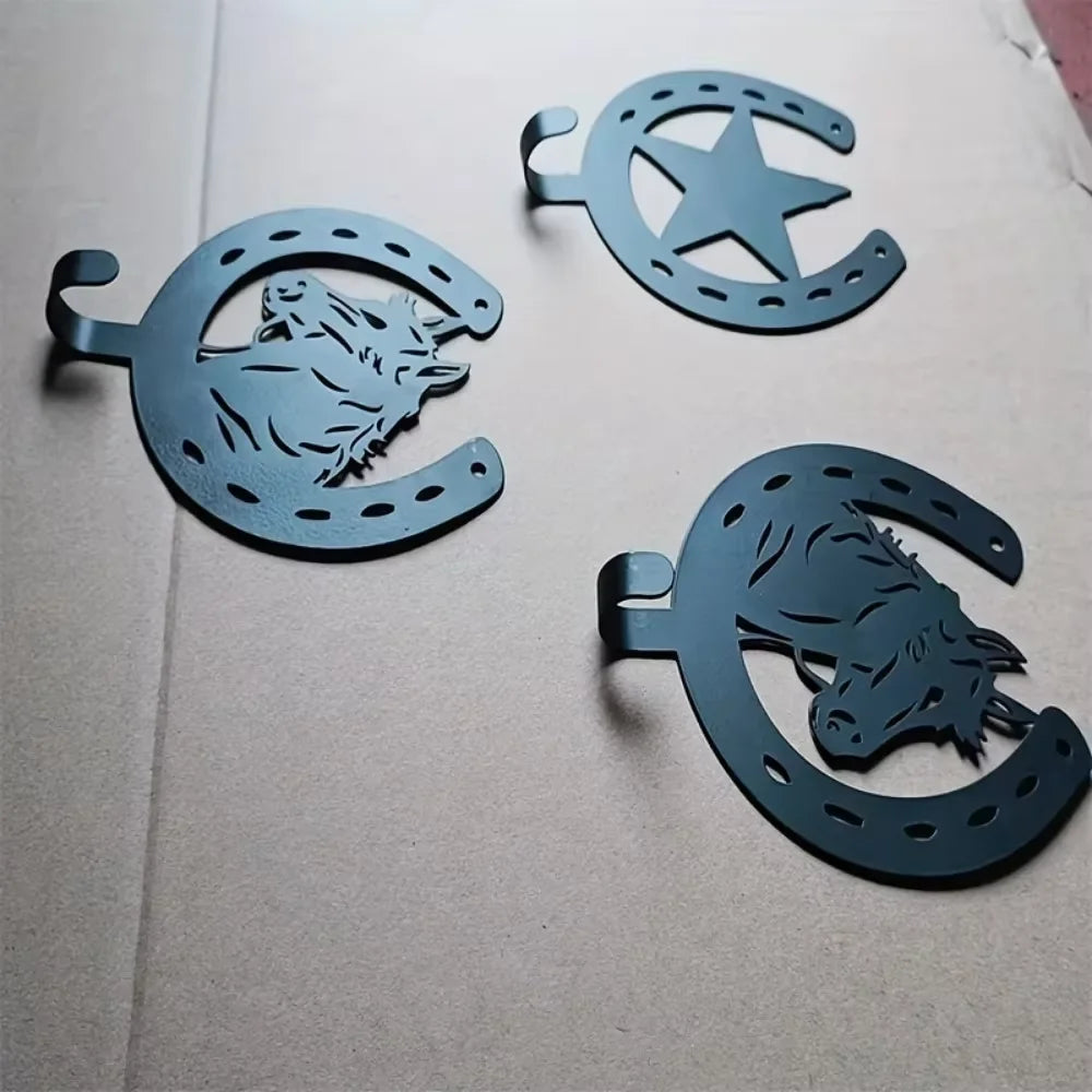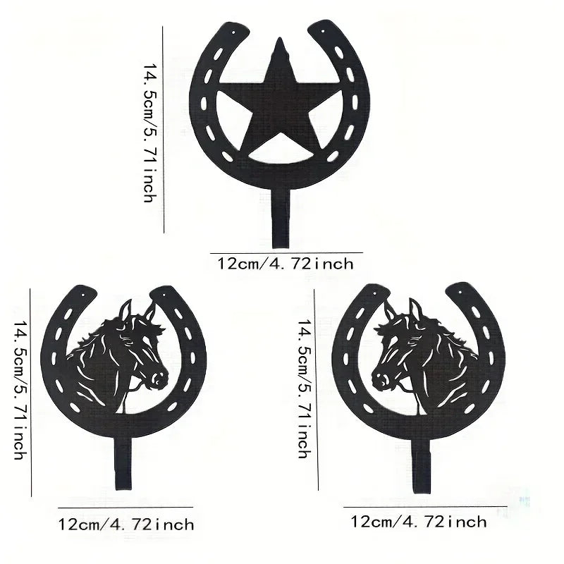- 3 motifs assortis : 2 chevaux et 1 étoile dans des fers à cheval noirs