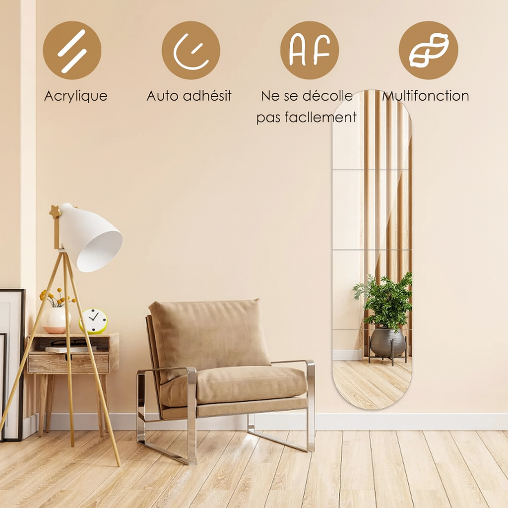 Peut être utilisé comme miroir de maquillage, miroir de plein pied ou décoration murale