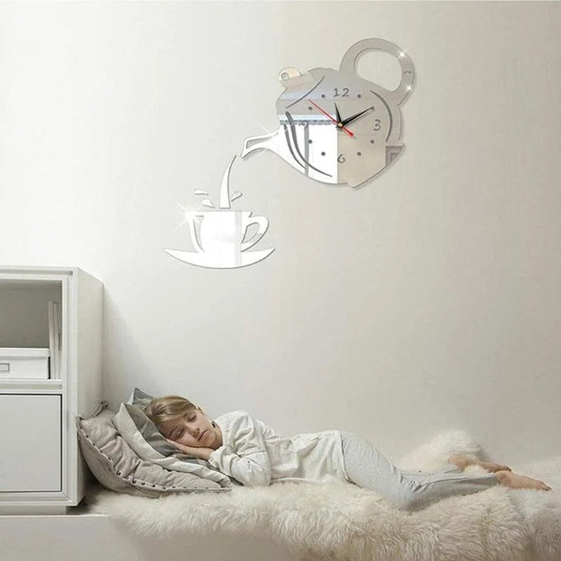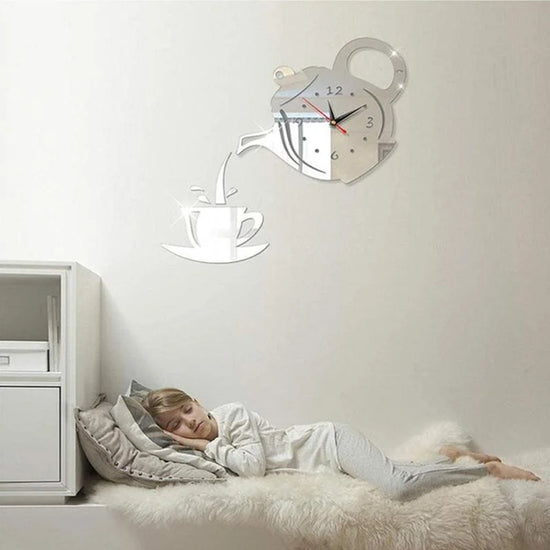 Nom du produit : Horloge murale 3D DIY en forme de théière