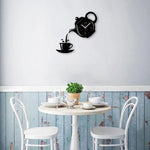Horloge murale cuisine en forme de théière versant dans une tasse. Plus qu’un simple instrument de mesure du temps, elle crée une ambiance chaleureuse et conviviale, parfaite pour accompagner vos repas en famille ou entre amis.