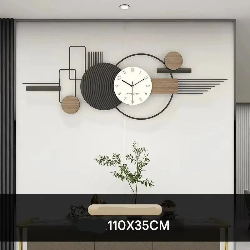 Alliant géométrie contemporaine et élégance sobre, cette horloge décorative pour salon se distingue par son design artistique mêlant bois clair, métal noir et lumière LED discrète. Les cercles, lignes et volumes en relief créent une dynamique visuelle unique, idéale pour magnifier un mur vide avec raffinement. Fonctionnelle tout en étant sculpturale, elle incarne un art de vivre moderne où chaque détail compte. Parfaite au-dessus d’un canapé, elle devient un véritable point focal et affirme un style à la fois minimaliste et sophistiqué.