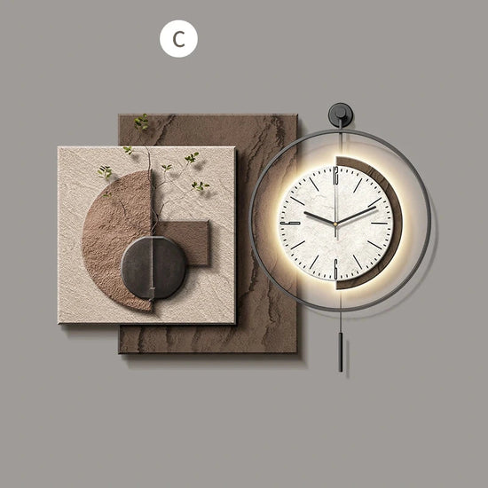 Décoration murale avec horloge – Design artistique en pierre reconstituée