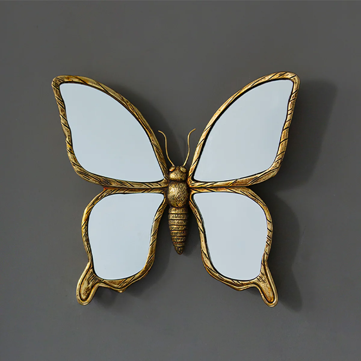 Cette sculpture murale allie élégance dorée et éclat des miroirs pour transformer n’importe quel mur en œuvre d’art lumineuse. À associer avec d'autres éléments naturels ou métalliques pour une ambiance chaleureuse comme le papillon pour une envolée poétique.