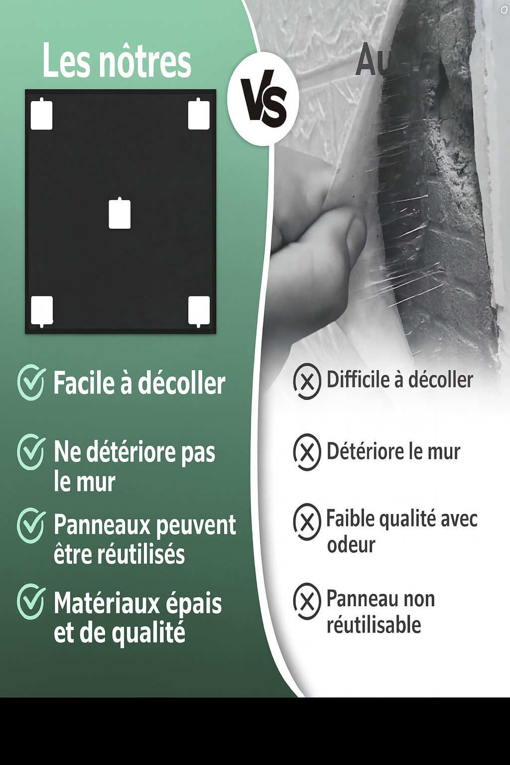 12 panneaux en feutre haute densité : Dimensions de chaque panneau : 30 x 30 cm (11.8" x 11.8"), épaisseur 0,9 cm (0.35").