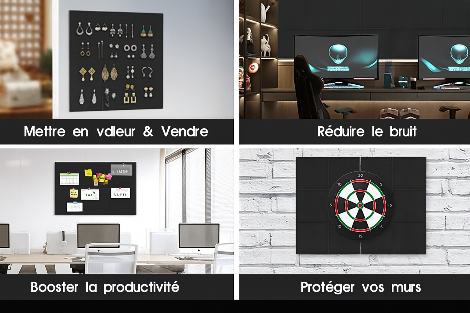 Design sobre et épuré, s’intègre dans tous les styles d’intérieur. Cet ensemble de panneaux feutres muraux est parfait pour la maison, le bureau, chambre ou une salle de création, ces panneaux allient esthétique moderne et utilité quotidienne.