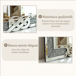 Apportez une touche de luxe et de lumière à votre intérieur avec ce miroir mural au design saisissant. Son cadre rectangulaire orné de motifs entrelacés et d’incrustations scintillantes capte le regard tout en magnifiant l’espace. Parfait au-dessus d’un buffet ou dans une entrée, il allie élégance classique et éclat moderne. Ce miroir devient une pièce maîtresse, idéale pour sublimer une décoration sophistiquée. Un choix raffiné pour ceux qui souhaitent mêler art et fonctionnalité.