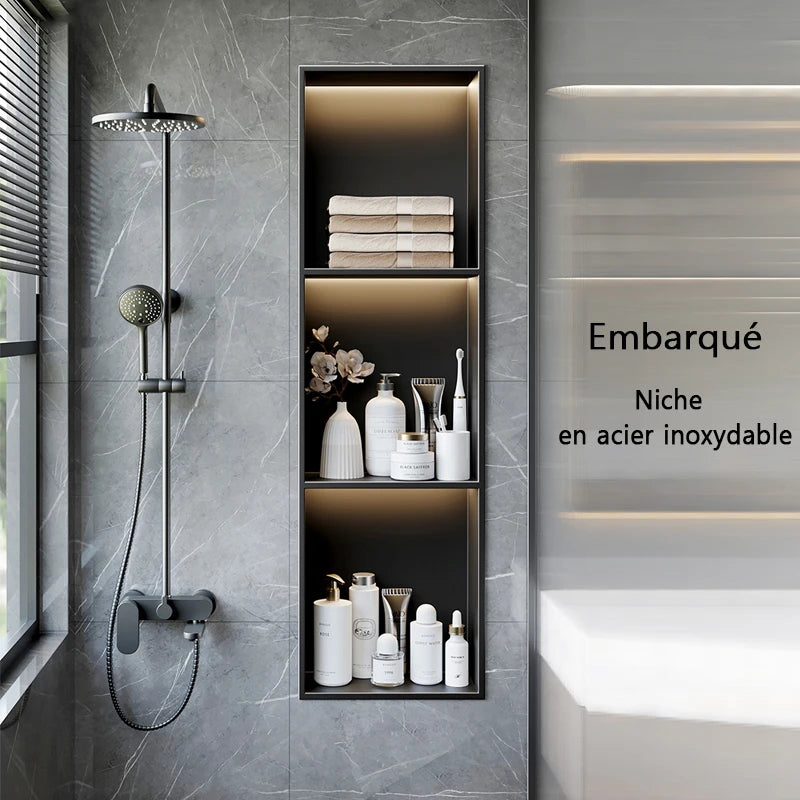 Apportez une touche d’élégance moderne à votre salle de bain ou à tout autre espace avec cette niche murale décorative. À la fois design et fonctionnelle, elle offre un rangement intégré chic pour vos produits de soins, serviettes ou objets de décoration. Osez transformer votre mur en véritable élément de design.