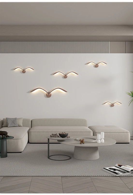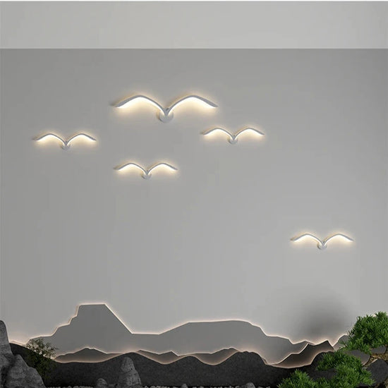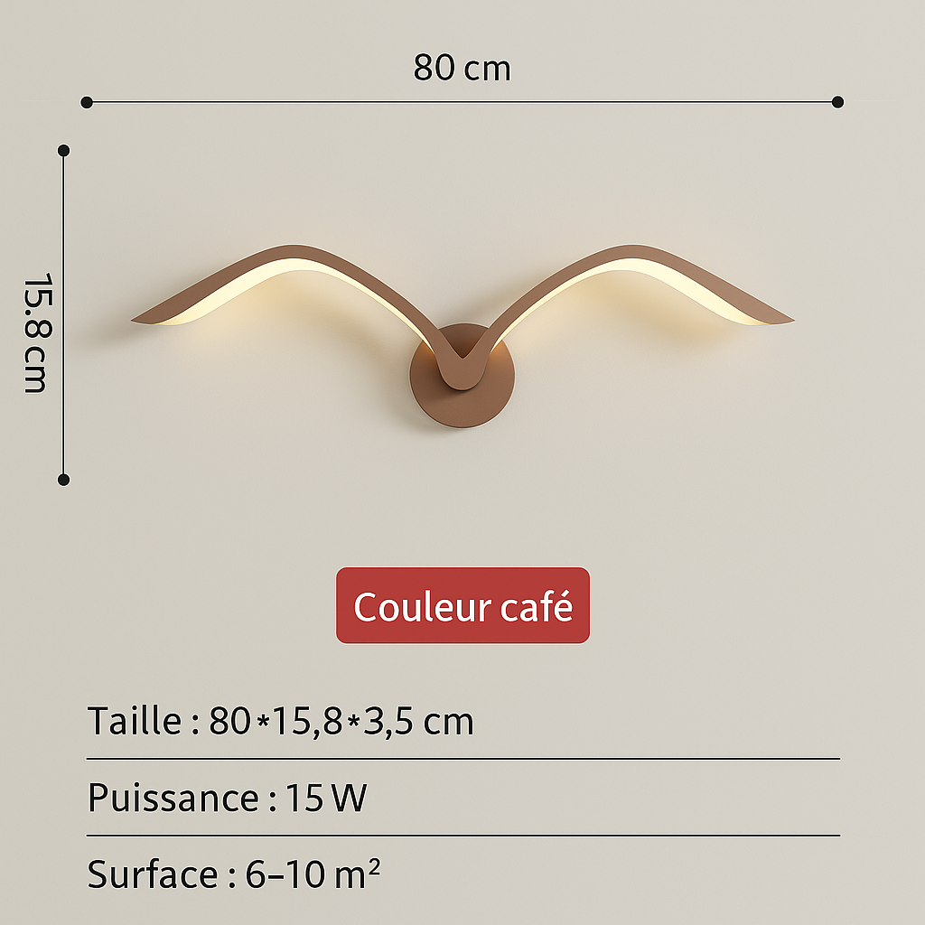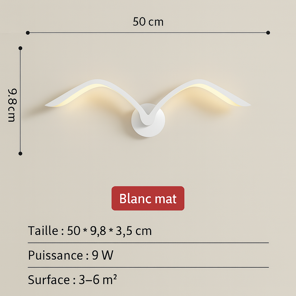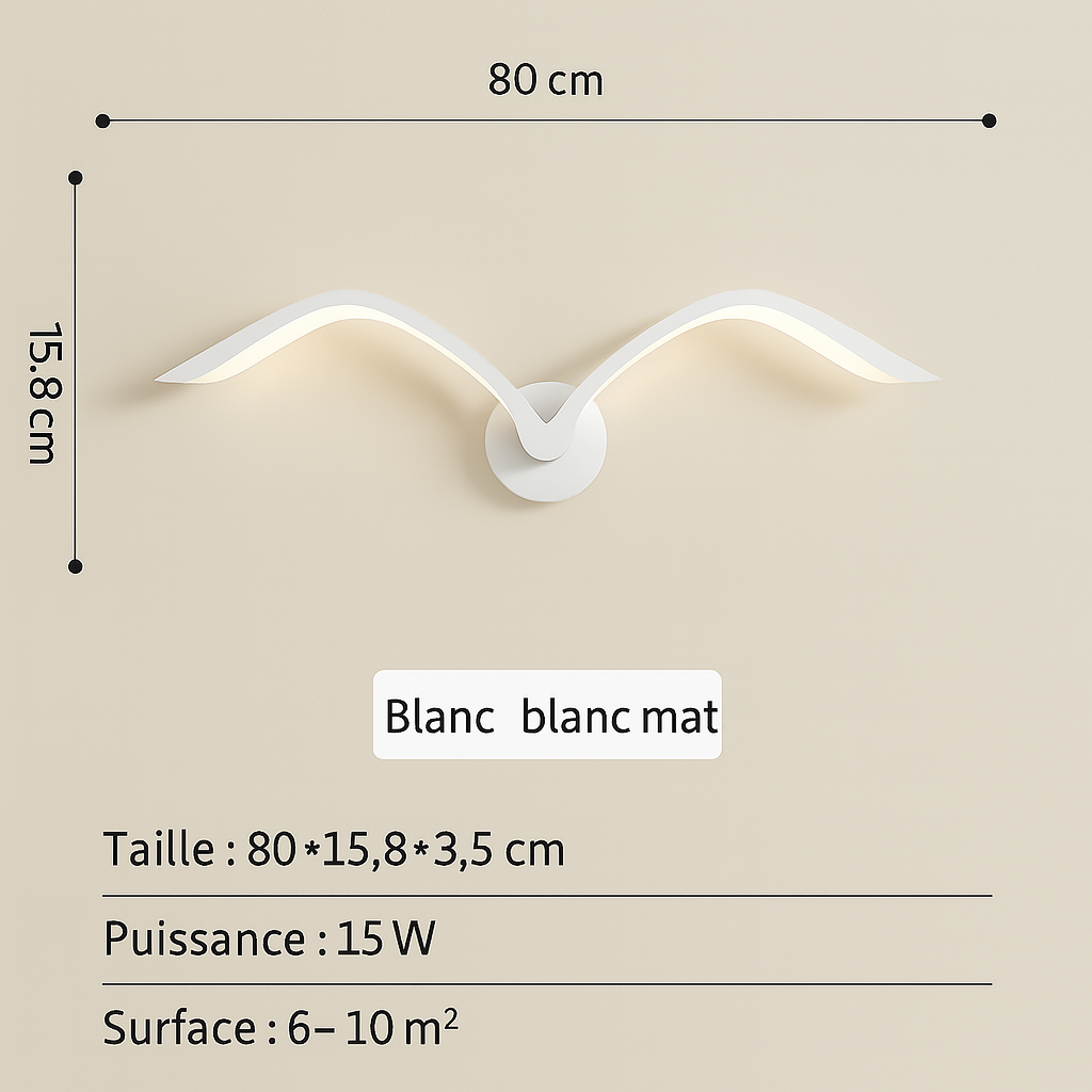 Transformez votre mur en scène poétique avec ces élégantes appliques murales en forme d'oiseaux en plein vol. Leur lumière douce et leur design épuré apportent une atmosphère chaleureuse et contemporaine à votre salon, chambre ou couloir.