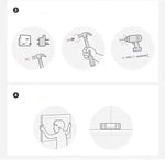 Outils de mesure recommandés : mètre ruban, crayon et niveau à bulle pour un alignement parfait.